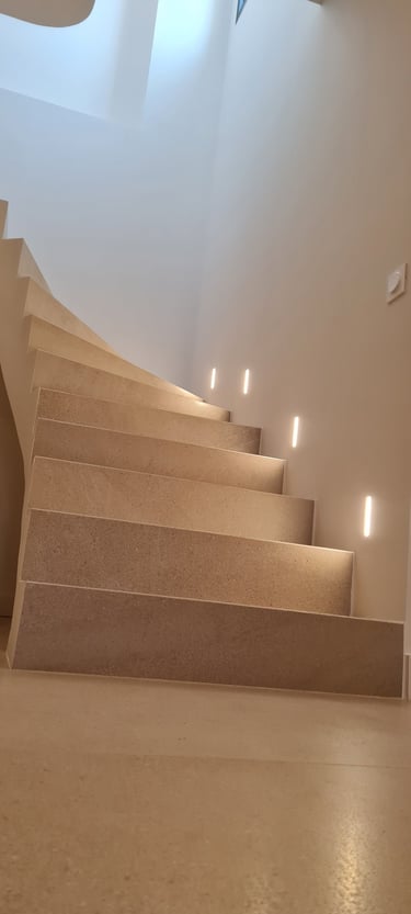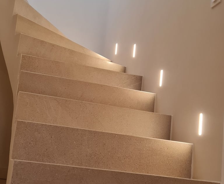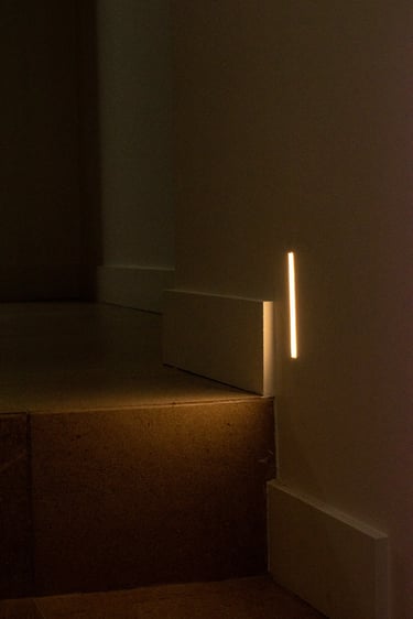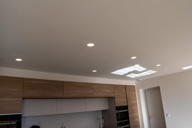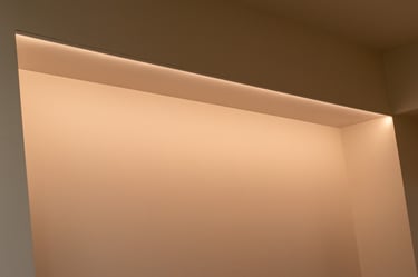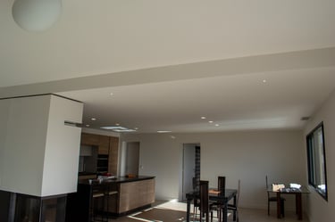 Décorations et aménagement d'ambiance intérieure, avec des luminaires LED encastrés dans des supports placo-plâtre.